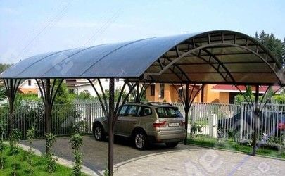 • Навес для автомобиля с покрытием из поликарбоната. Прочный и экологичный материал внешне очень схож со стеклом, что позволяет придать готовой конструкции максимально эстетичный внешний вид. Разнообразие цветовых решений позволит выбрать вариант на любой вкус;