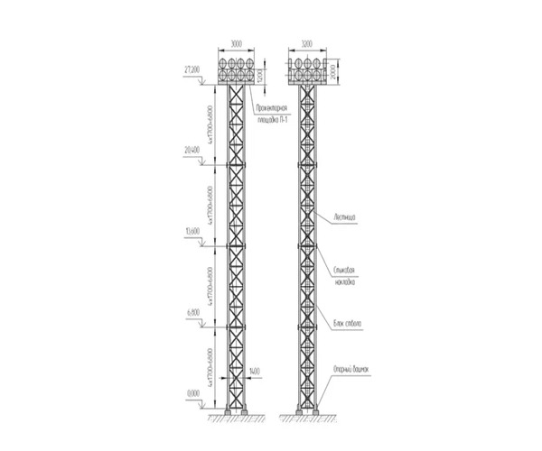 Мачты освещения с гранеными громоотводами